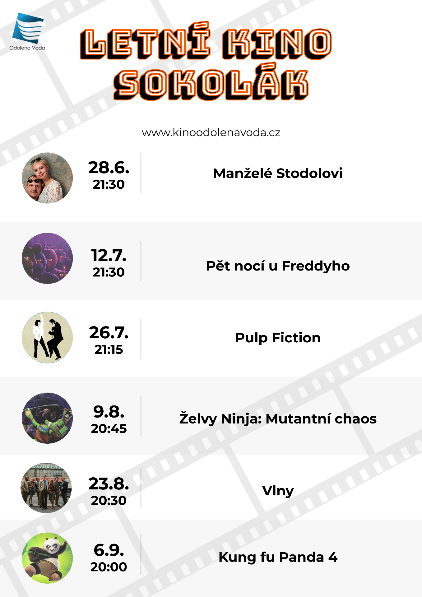 Letní kino Sokolák promítá z pravidla po dobu letních prázdnin, každý druhý pátek. Promítá se ve formátu MP4 na kvalitní pláno o šířce 10m.